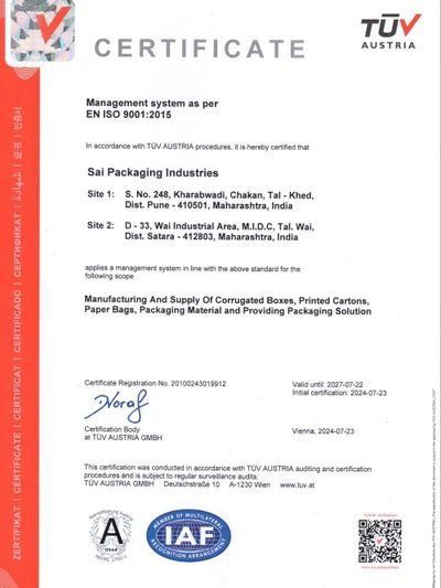 "At Sai Packaging Industries, our mission is to consistently deliver superior packaging solutions that exceed customer expectations. Since our inception in 1994, we have been dedicated to pioneering advancements in corrugated boxes, printed cartons, and an extensive range of packaging supplies . Our commitment extends beyond borders, as